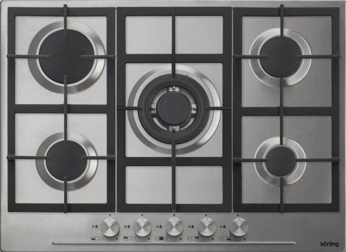 Поворотные регуляторы газовых варочных поверхностей Korting выполнены из металла, что создает профессиональный стиль и препятствует их нагреву.