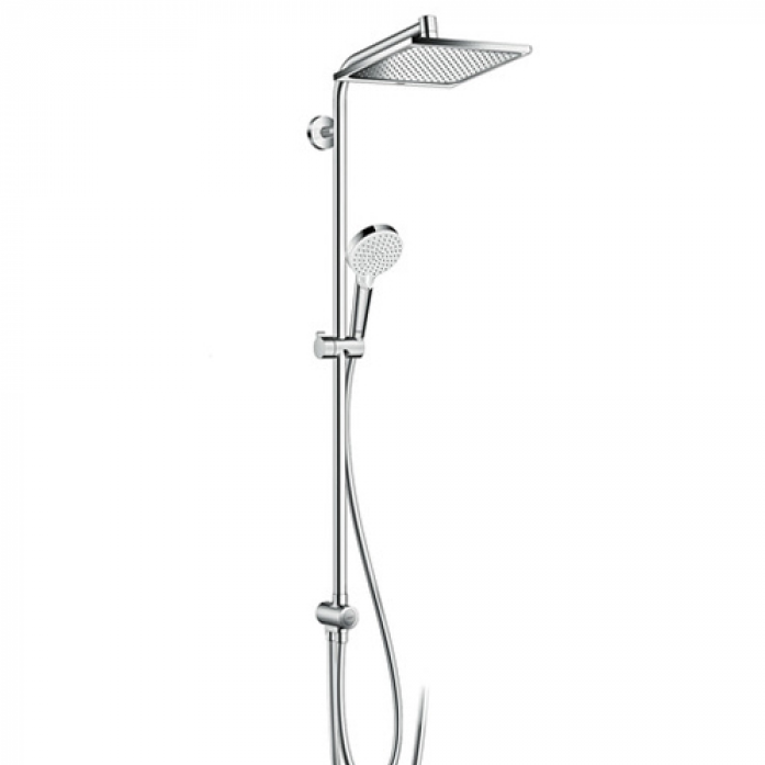 Душевой гарнитур Hansgrohe Crometta E 240 1jet Showerpipe Reno EcoSmart 9 л 27289000 с верхним душем, корпус хром, лицевая часть хром