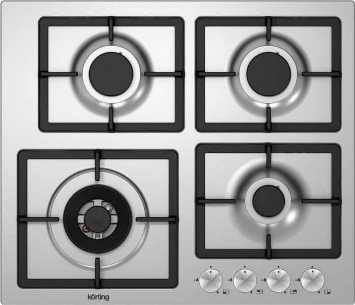 Поворотные регуляторы газовых варочных поверхностей Korting выполнены из металла, что создает профессиональный стиль и препятствует их нагреву.