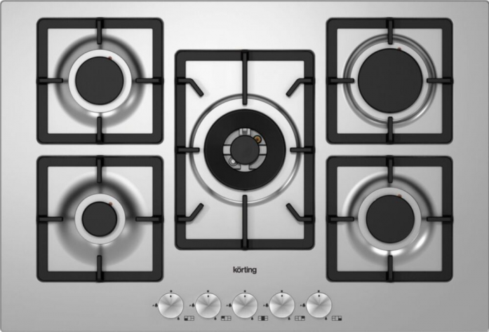 Поворотные регуляторы газовых варочных поверхностей Korting выполнены из металла, что создает профессиональный стиль и препятствует их нагреву.