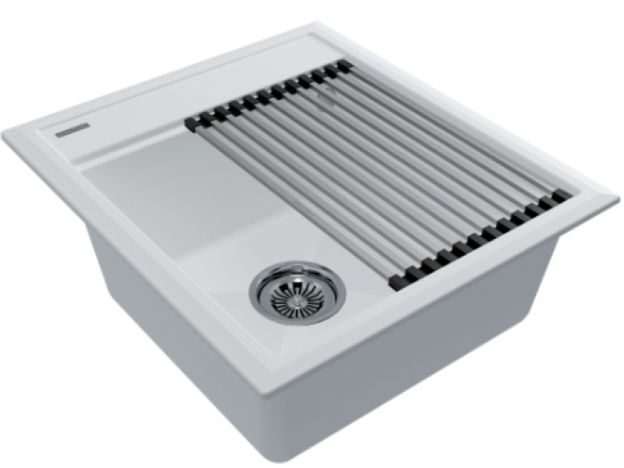 Мойка гранитная Paulmark STEPIA 45, мойка, гранит, белый + STEP, ролл-мат, брашированная нержавеющая сталь