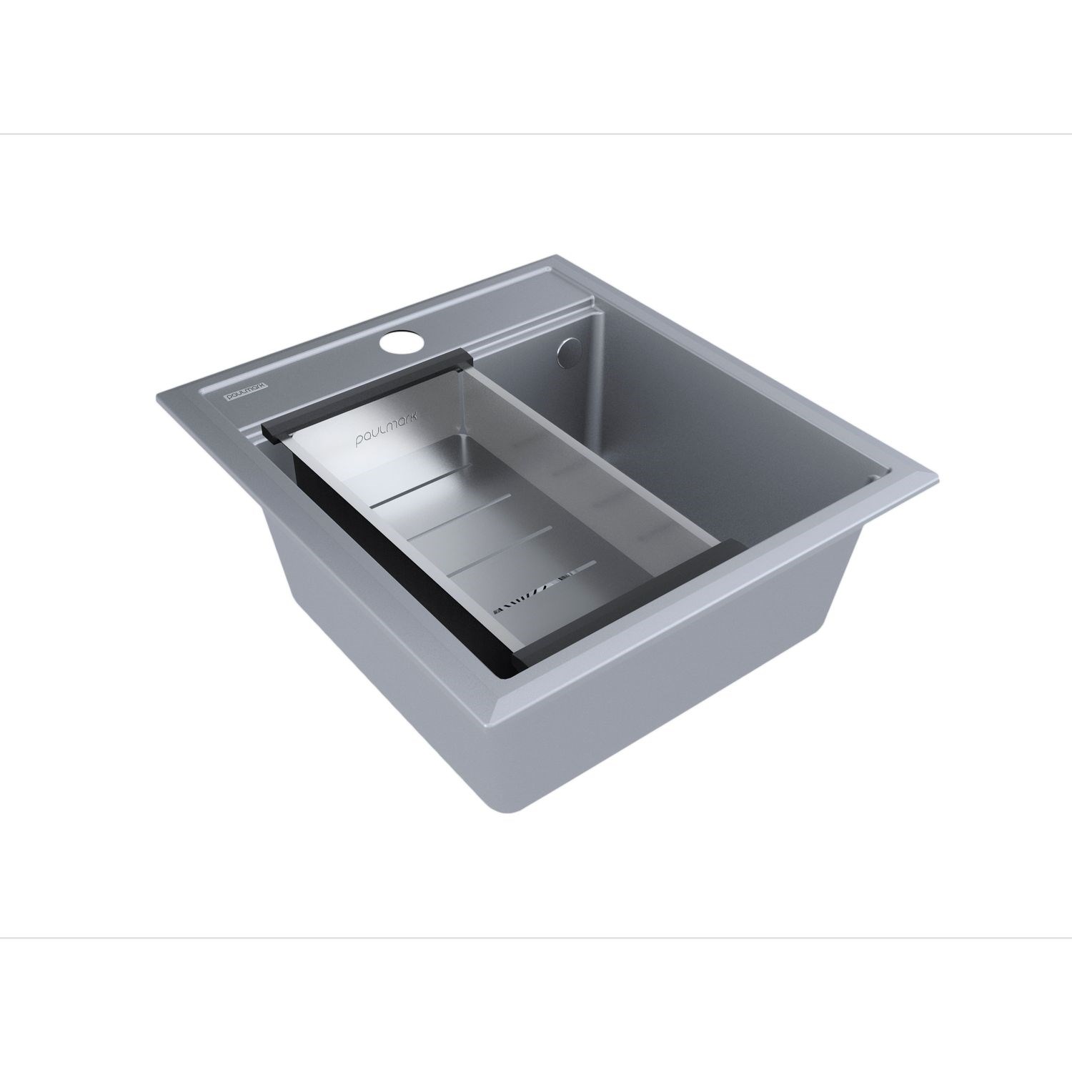 Мойка гранитная Paulmark STEPIA 45, мойка, гранит, серый металлик + ADVANCE, коландер, нерж. сталь брашированная