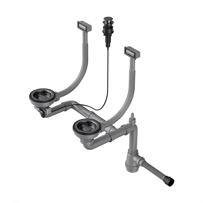 Арматура с клапаном-автоматом для двухчашевых моек с прямоугольными переливами.