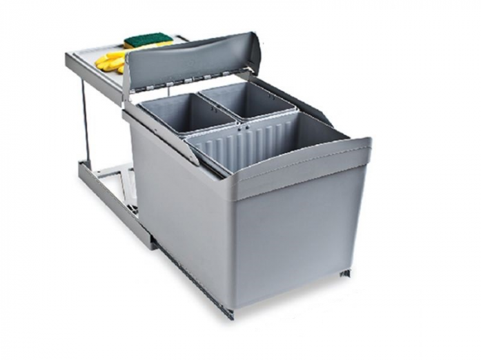 Alveus Albio 30 1x16 L+2x7.5 L - система сортировки отходов, сконструированная таким образом, чтобы упростить и облегчить удаление кухонных отходов с рабочих поверхностей. Система позволяет сортировать пищевые и непищевые отходы. Состоит из контейнера 16 л и двух контейнеров по 7.5 л. Металлические направляющие и стабильная конструкция позволяют собирать до 31 литра отходов. Систему возможно установить так, чтобы она открывалась одновременно с открытием дверцы распашного кухонного шкафа.Тип: сортер