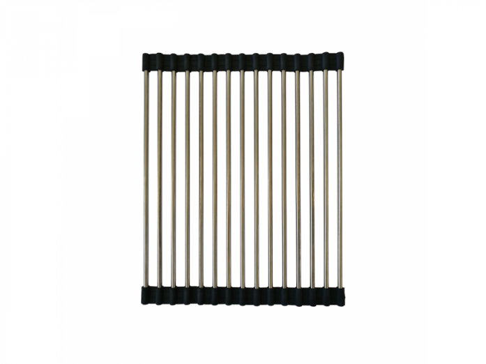 Рулонную сушилку можно расстилать на кухонной столешнице, крыле или чаше мойки, увеличивая таким образом рабочее пространство. Используется для сушки посуды, размораживания продуктов. На сушилку можно складывать вымытые овощи и фрукты, а также использовать как подставку под горячее. После использования легко сворачивается в компактный рулон.